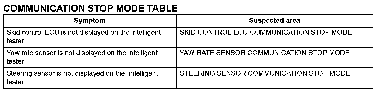 PROBLEM SYMPTOMS TABLE