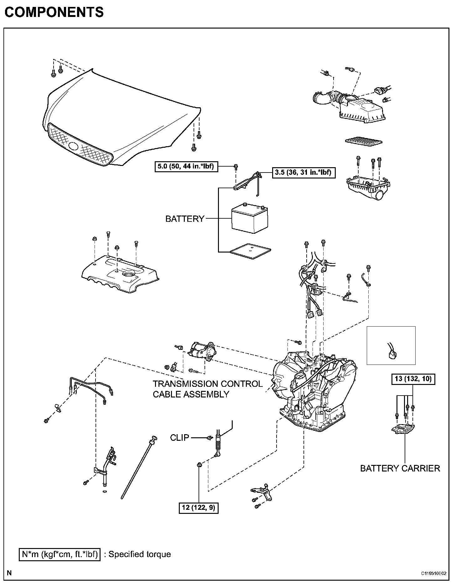 Torque: 13 Nm (132 kgf/cm, 10 ft. lbs.)