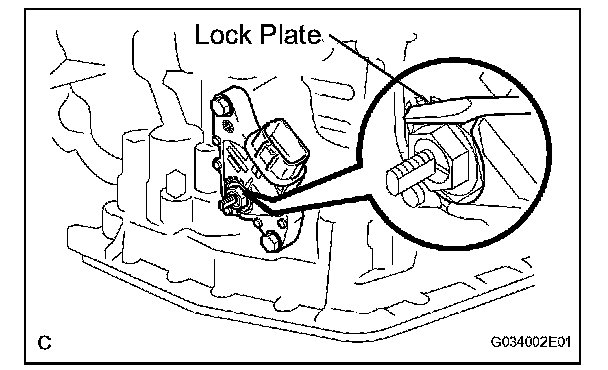 (c) Pry out the lock plate and remove the manual valve shaft nut.