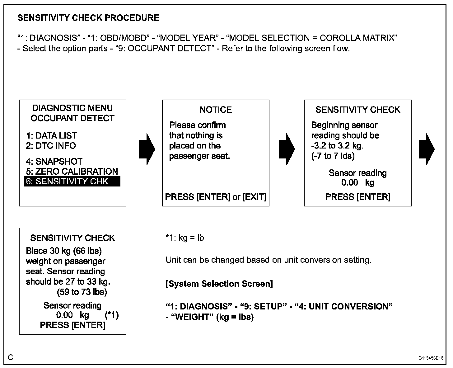 - When performing the sensitivity check, use a solid metal weight (the check result may not appear properly if a liquid weight is used).