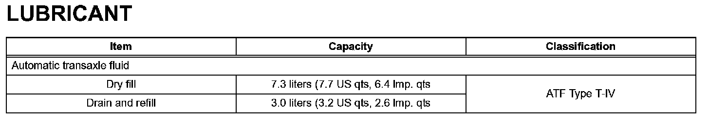 Automatic Transaxle - Lubricant: