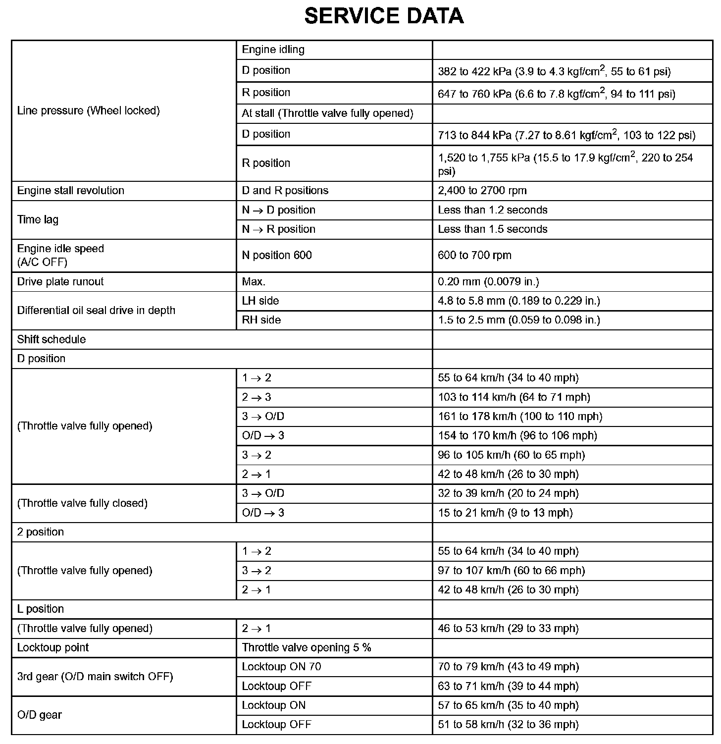 Automatic Transaxle - Service Data: