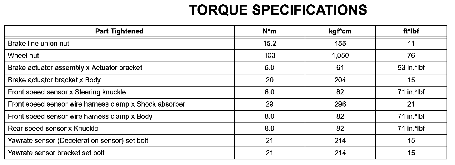 Brake Control - Torque Specifications: