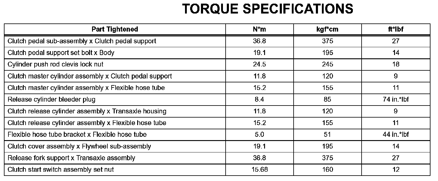 Clutch - Torque Specifications: