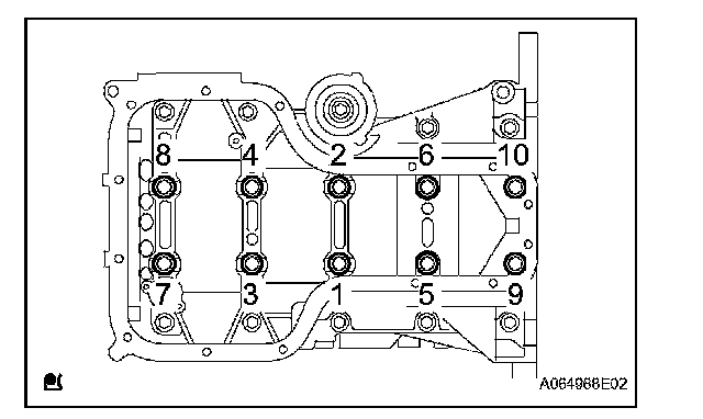 Tighten the bolts to the specified torque in several passes in the sequence shown.
