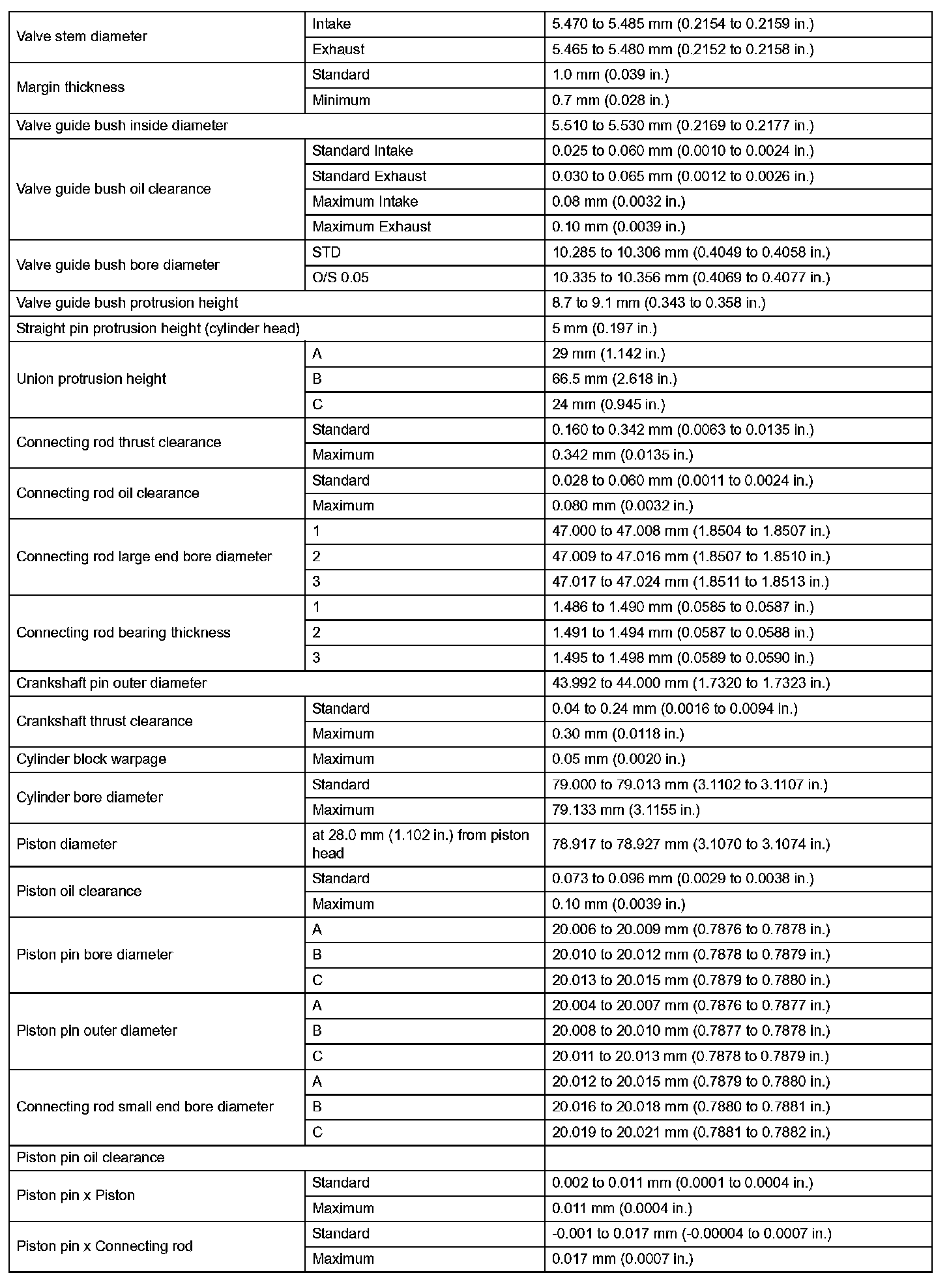 Engine Mechanical - Service Data (Part 2):