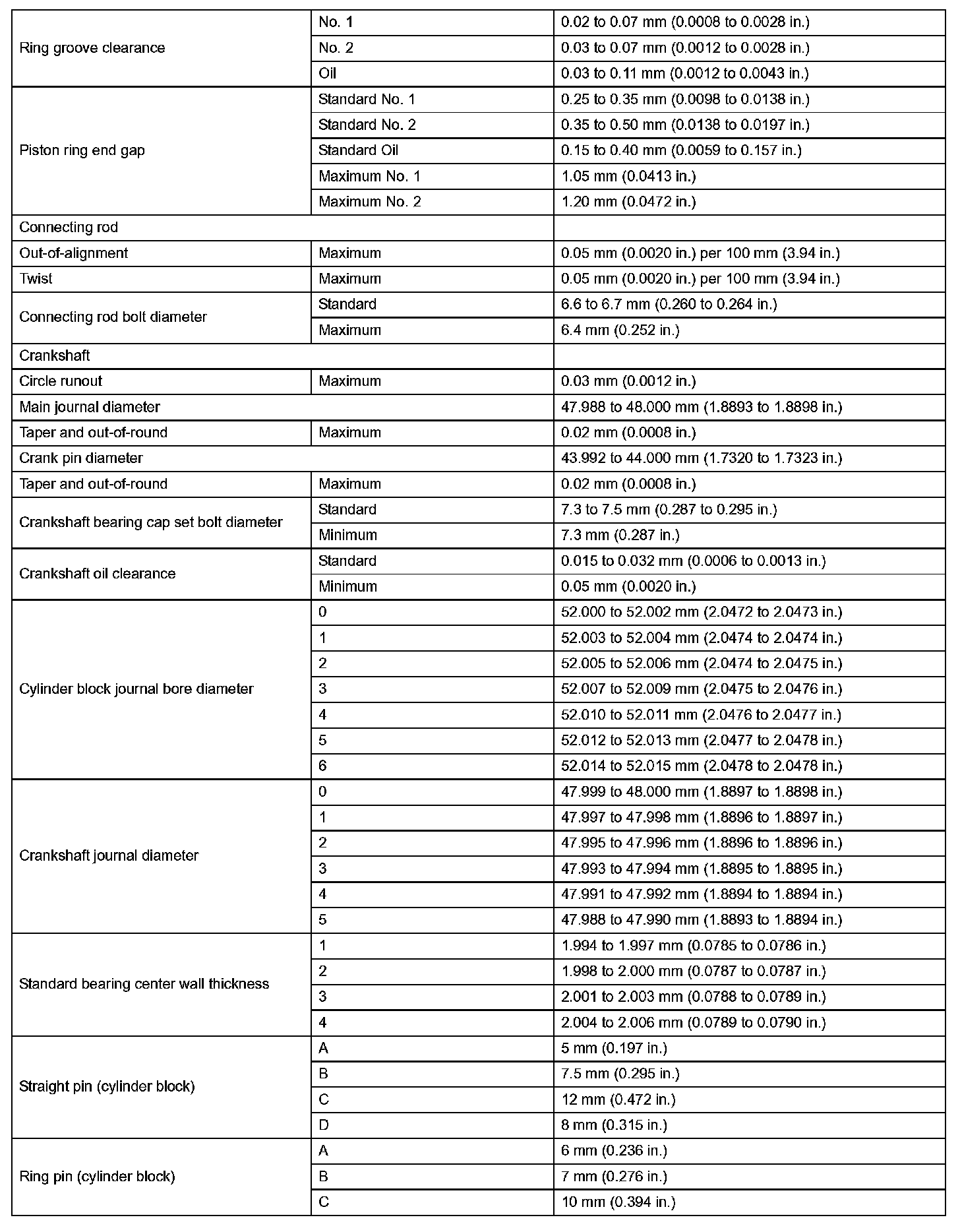 Engine Mechanical - Service Data (Part 1):