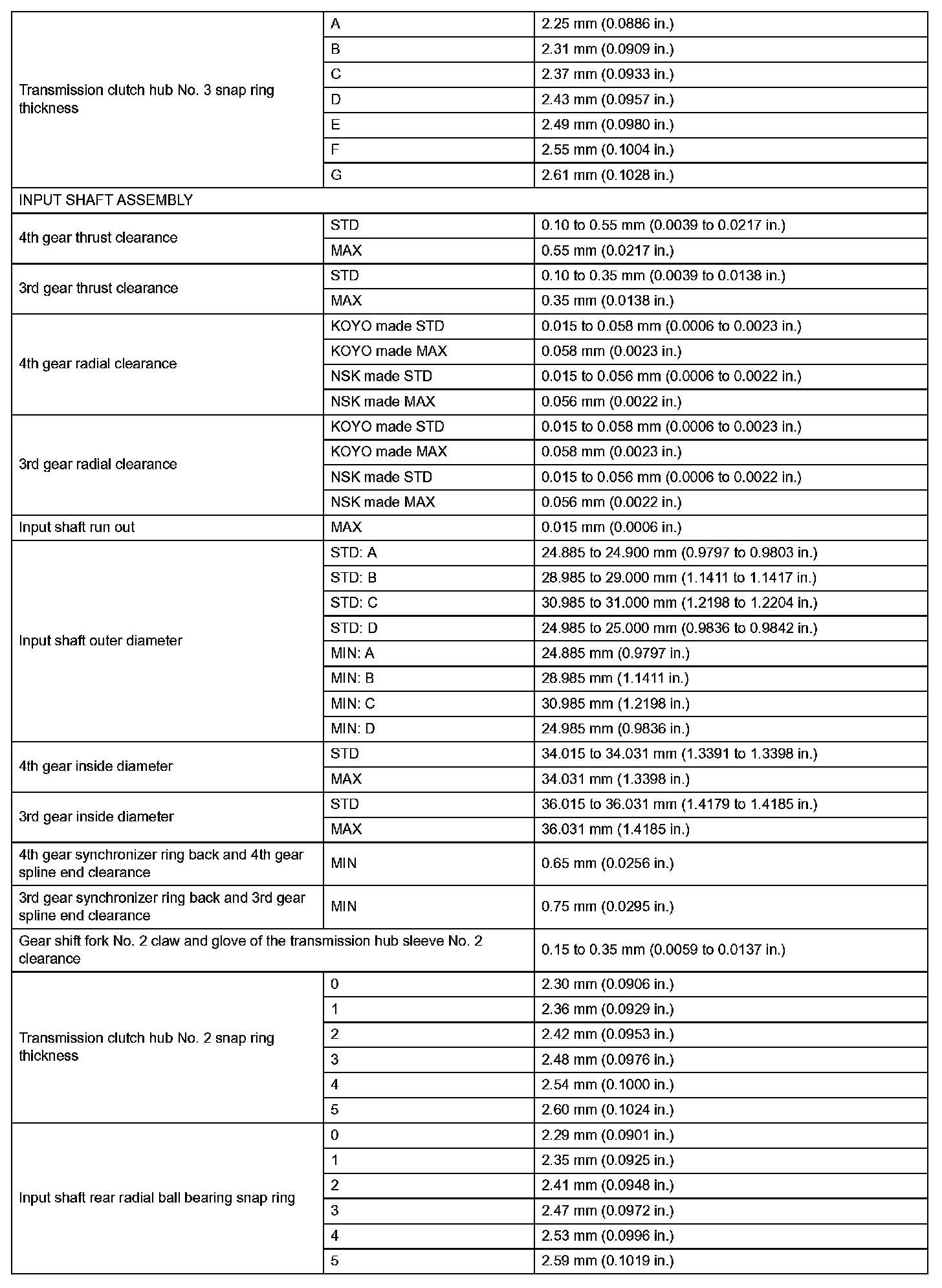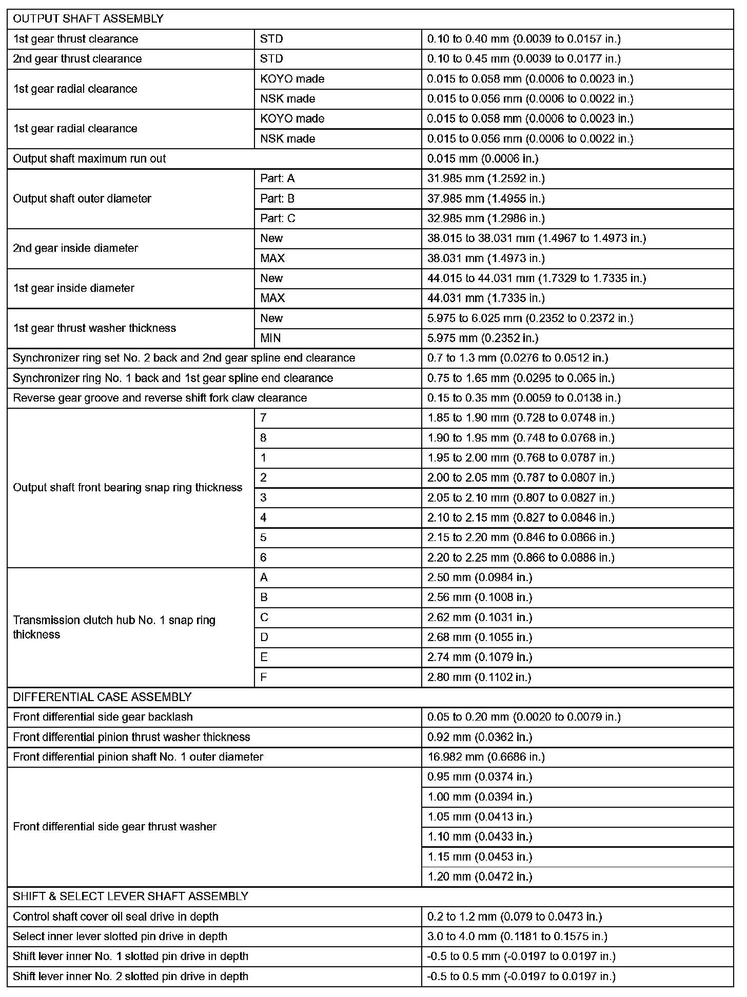Manual Transaxle - Service Data (Part 2):