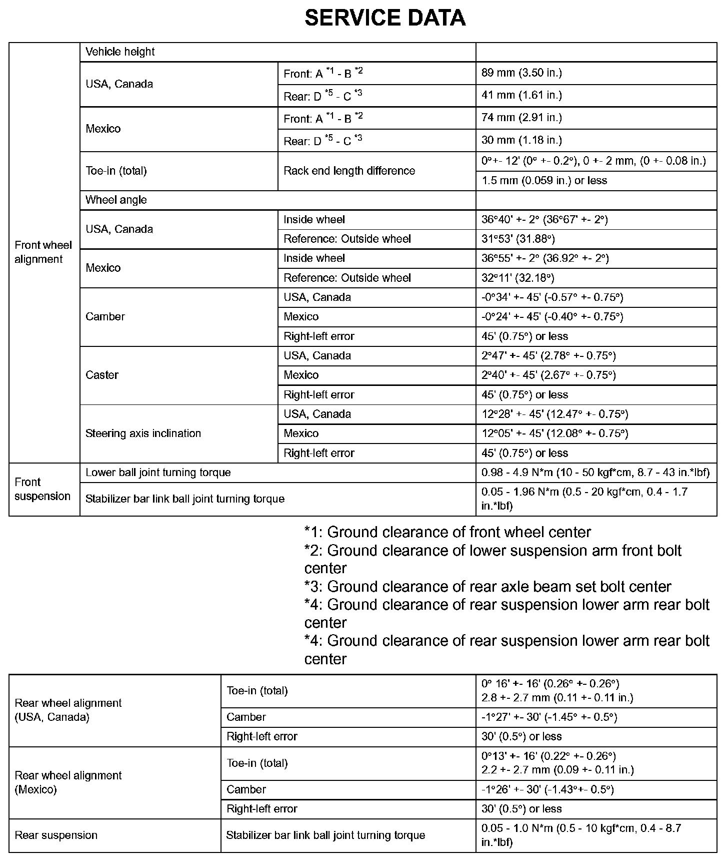 Suspension - Service Data: