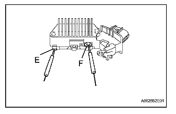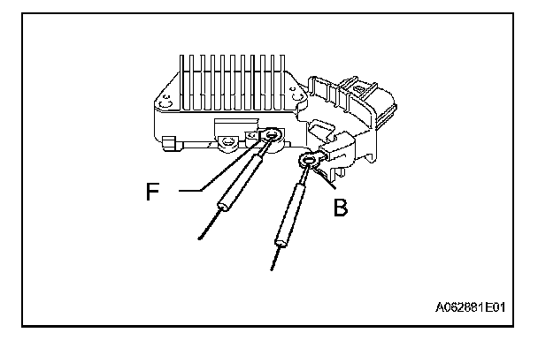 When the positive and negative poles of the negative (-) terminal and each rectifier terminal are switched over, there is a resistance of below 1 ohm in one direction but 10 k Ohms or higher in the other direction.