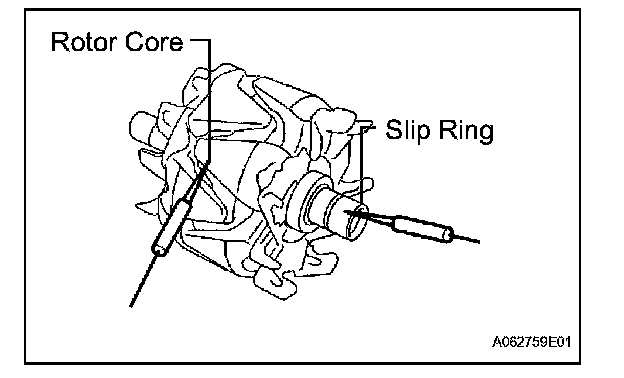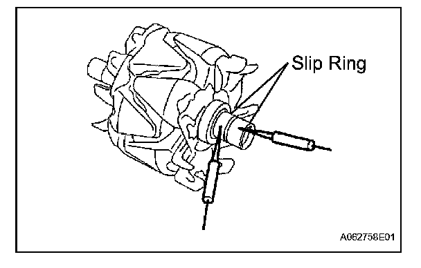 2. Using an ohmmeter, measure the resistance between the slip ring and rotor.