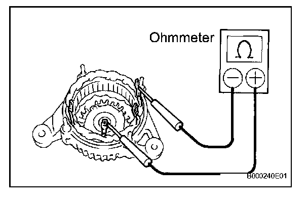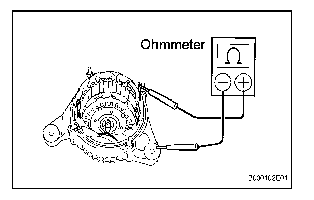 1. Using an ohmmeter, measure the resistance between the slip rings.