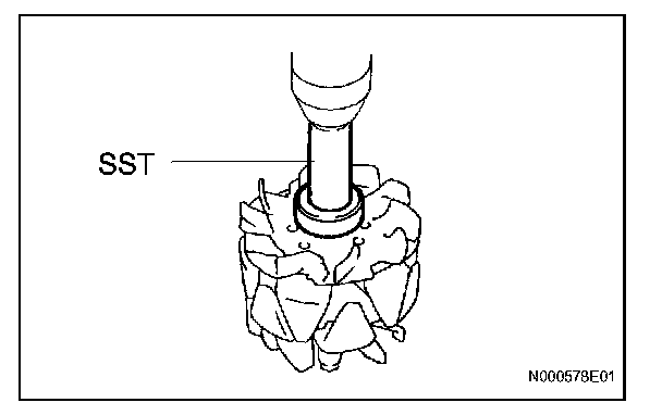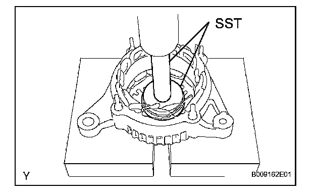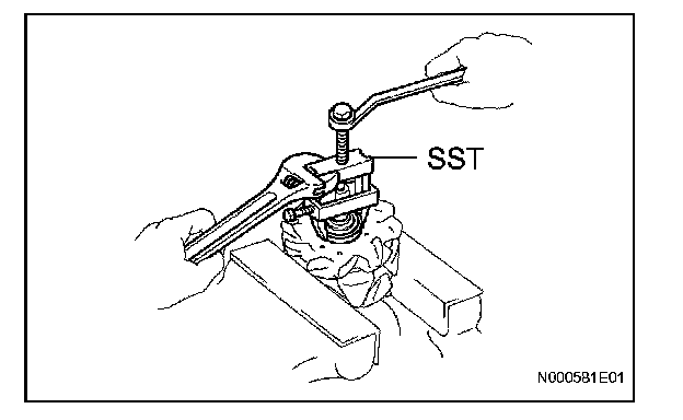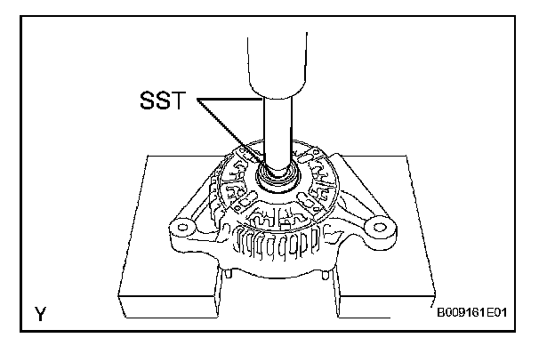 b. Using SST and a press, push the bearing out.