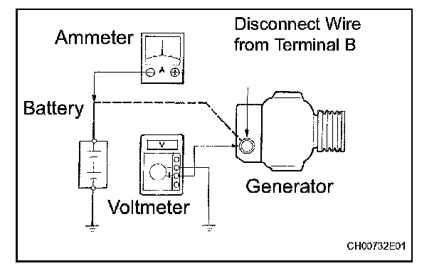 1. Disconnect to the wire from terminal B of the generator and connect it to the negative (-) lead of the ammeter.