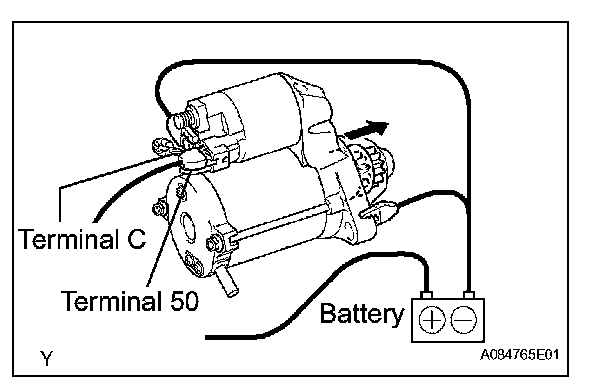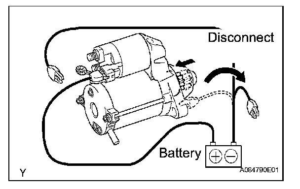 1. Disconnect the negative (-) lead from terminal C. Check that the clutch pinion gear remains extended.