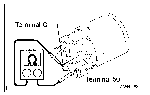 1. Using an ohmmeter, check that there is resistance between terminals 50 and C.