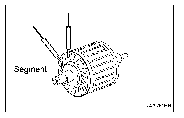 1. Using an ohmmeter, check that there is resistance between the segments of the commutator.