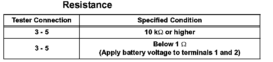 1. Using an ohmmeter, measure the resistance between the terminals.
