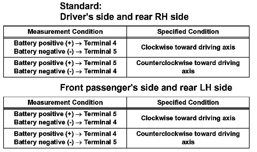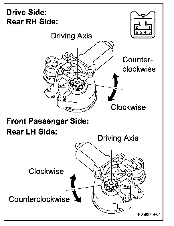 - The passenger's side and rear LH regulator motors should be inspected in the same procedure.