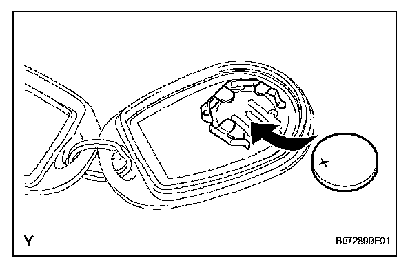 a. Install a new battery (lithium battery) with the positive (+) side up, as shown in the illustration.