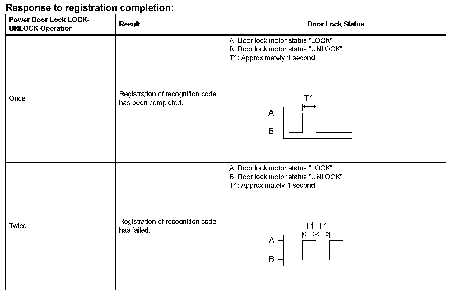 m. The multiplex network body ECU automatically performs power door LOCK-UNLOCK operations to show whether registration has been completed correct or not within 3 seconds after Procedure "I".