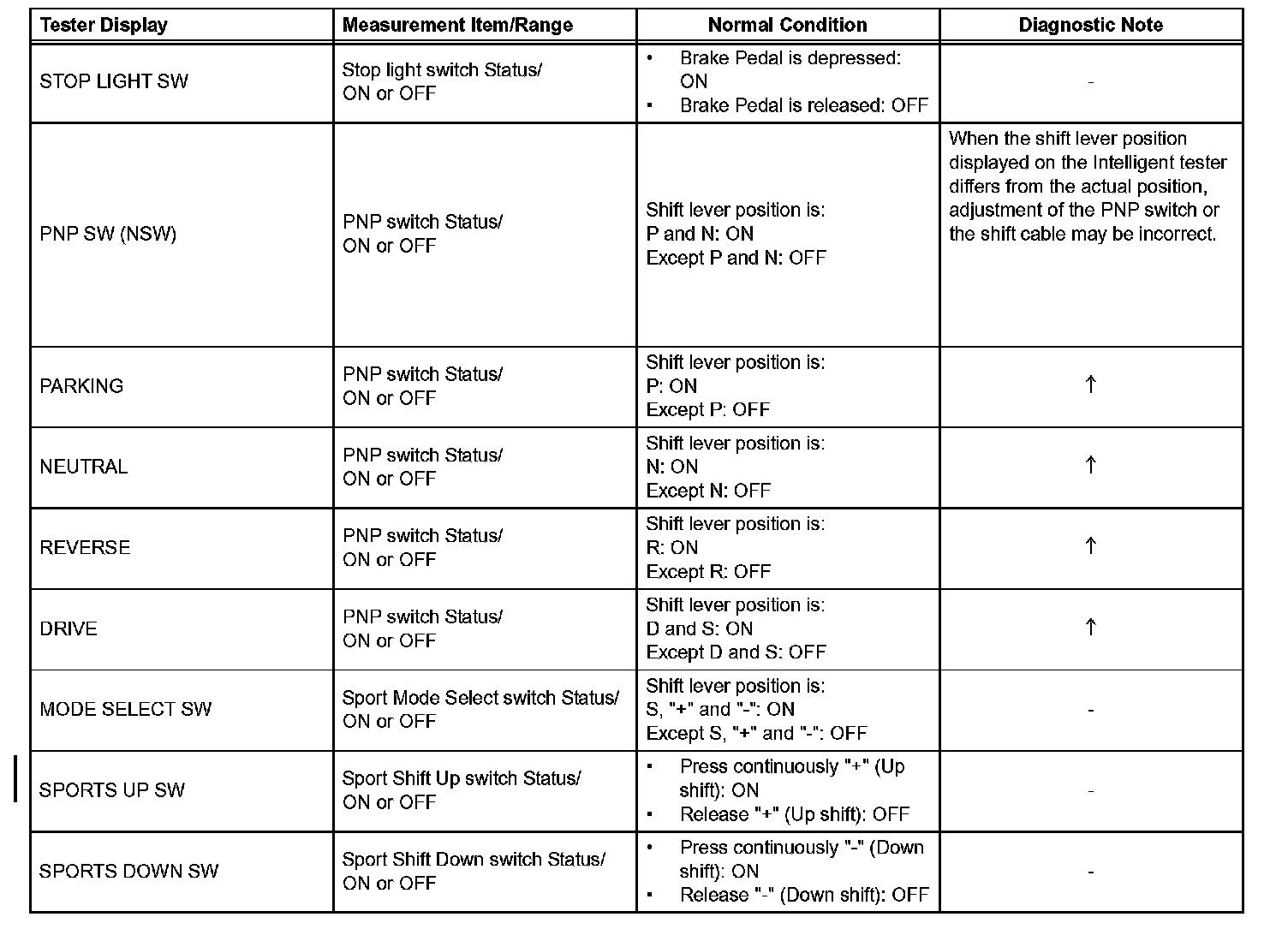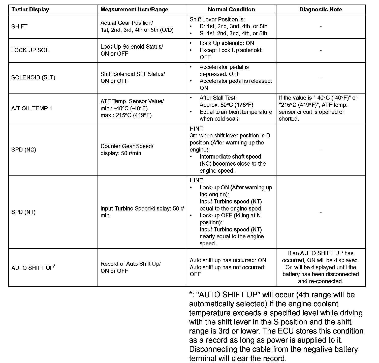 HINT: According to the DATA LIST displayed by the intelligent tester, you can read the value of the switch, sensor, actuator and so on without parts removal. Reading the DATA LIST as the first step of troubleshooting is one method to shorten labor time.