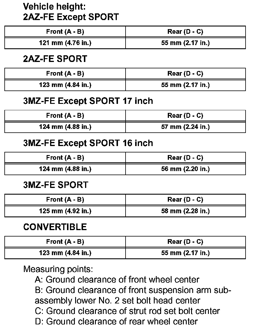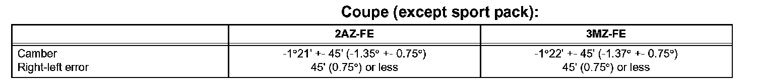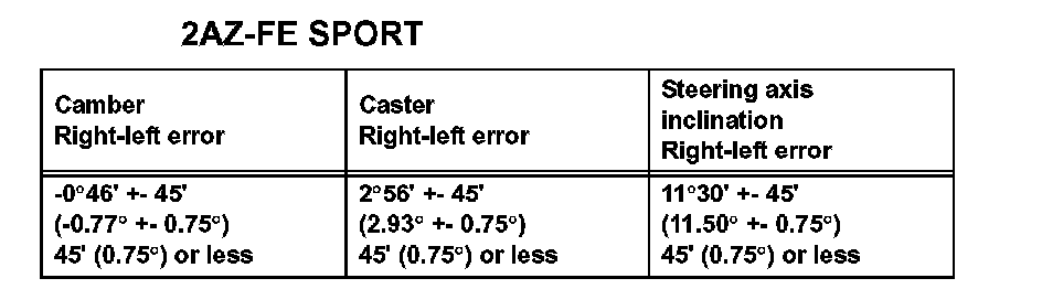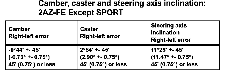Camber, Caster and Steering Axis Inclination - 2AZ-FE SPORT: