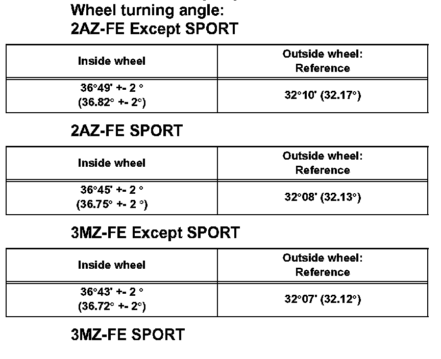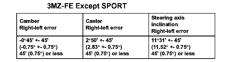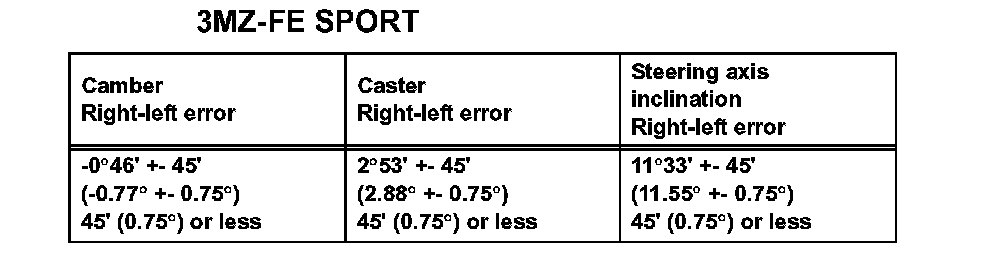 Camber, Caster and Steering Axis Inclination - 3MZ-FE SPORT: