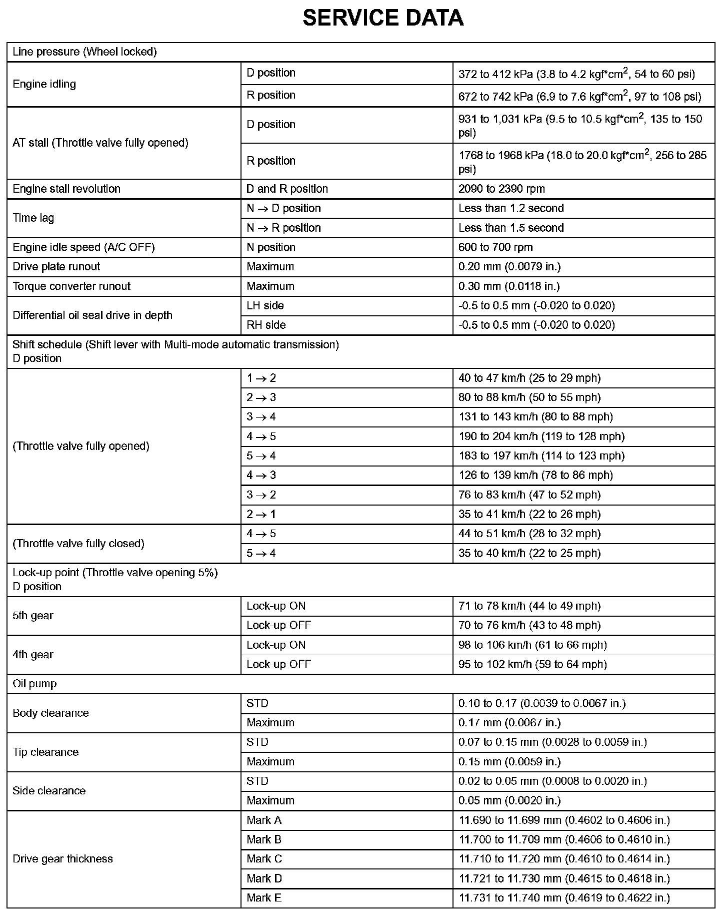 Automatic Transaxle - Service Data (Part 1):