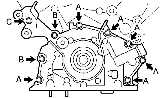 Install the oil pump with the 9 bolts. Tighten the bolts uniformly in several steps. A