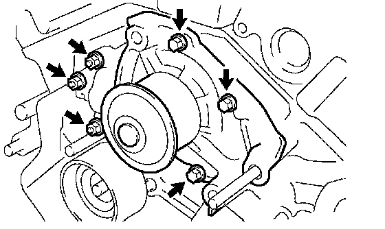 Install a new gasket and the water pump with the 3 bolts and 3 nuts.