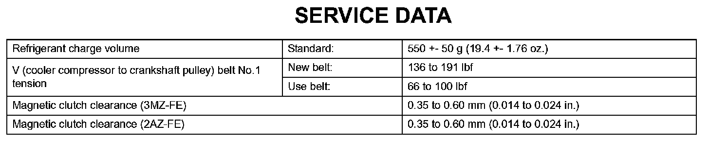 Air Conditioning - Service Data: