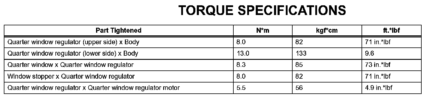 Windshield / Windowglass - Torque Specifications: