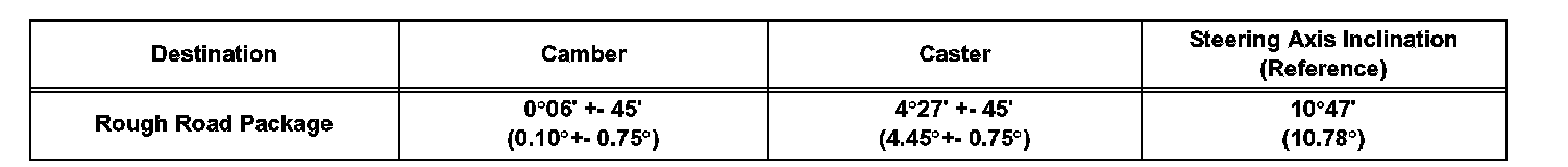 ^ The tolerance for the difference between the left and right wheels is 30' (0.5°) or less for both the camber and caster.
