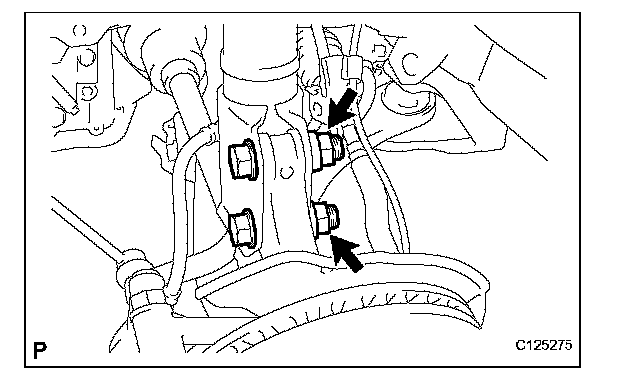 (c) Remove the 2 nuts on the lower side of the shock absorber.