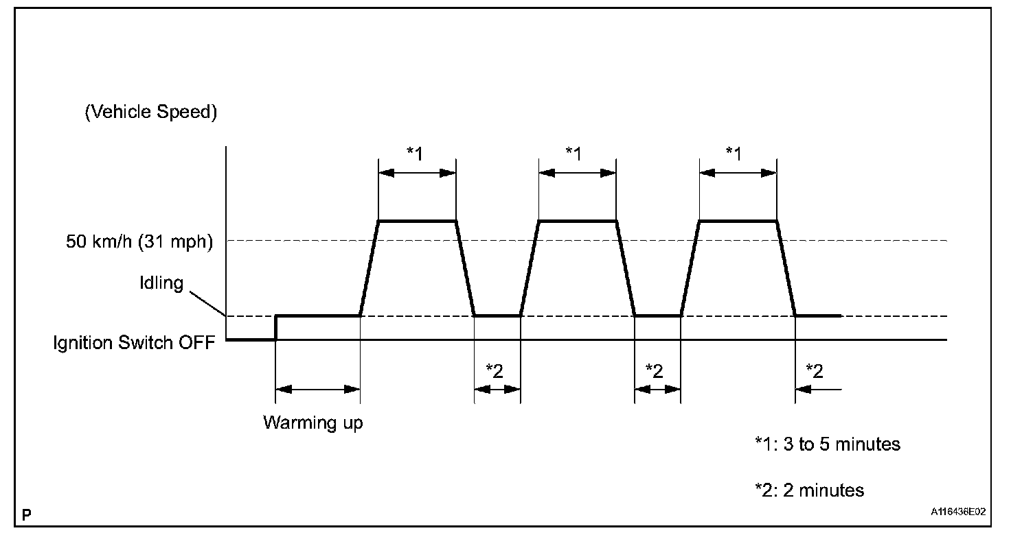 6. Drive the vehicle at 50 km/h (31 mph) or more for 3 to 5 minutes *1.