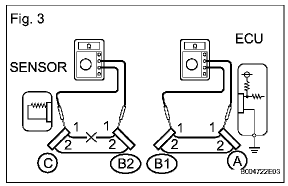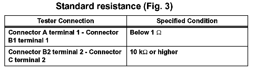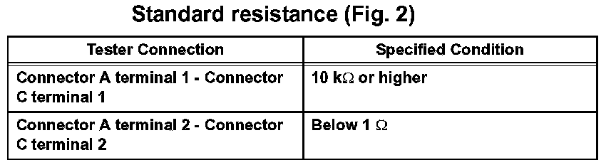 1. Disconnect connectors A and C and measure the resistance between them.
