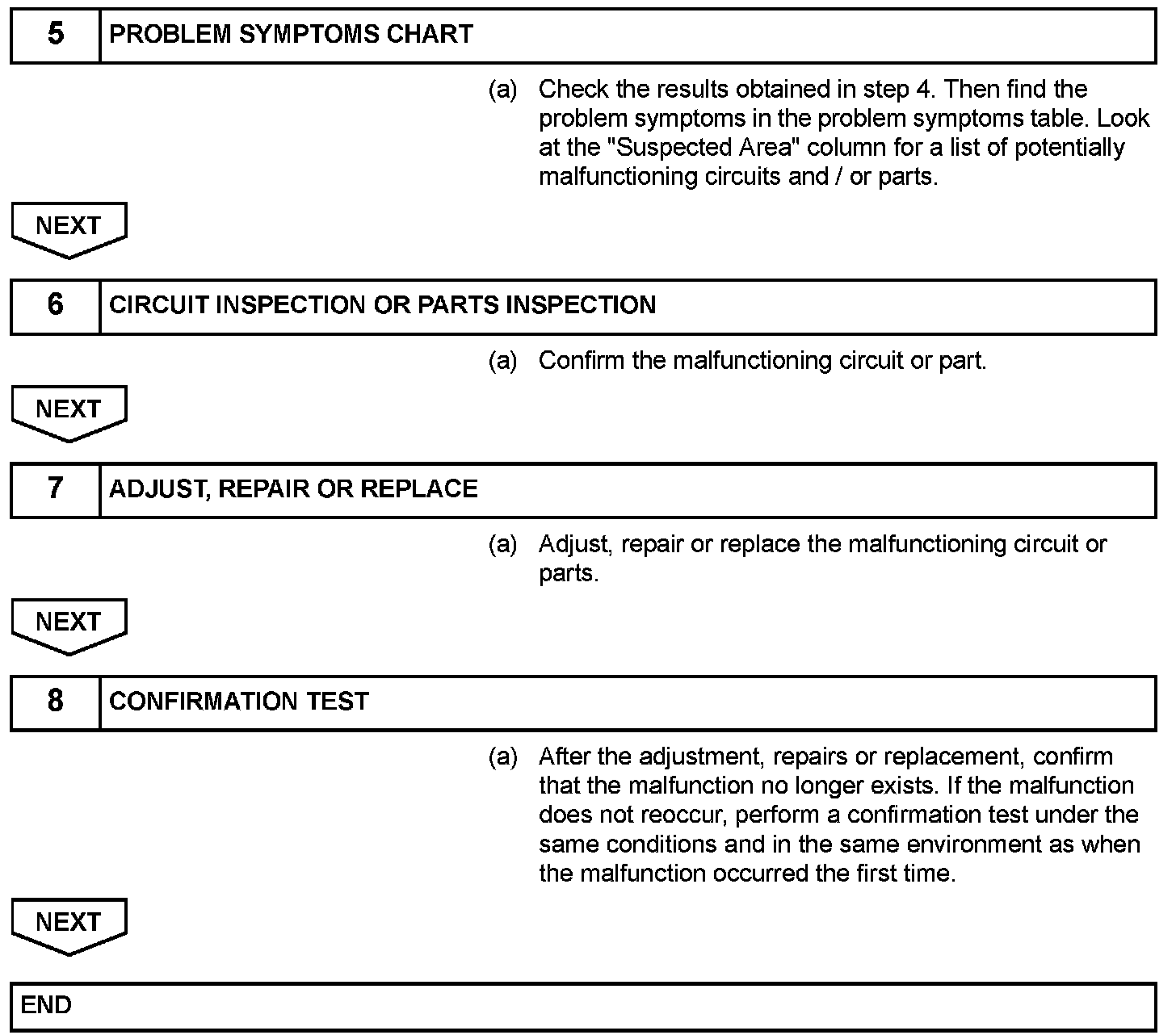 HINT: Perform troubleshooting in accordance with the procedures. The given is an outline of basic troubleshooting procedures. Confirm the troubleshooting procedures for the circuit you are working on before beginning troubleshooting.