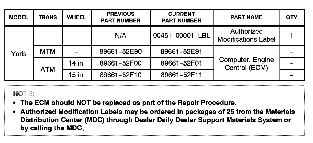 ^ ECM/PCM part number: [Refer to the Parts Information section for the CURRENT PART NUMBER]