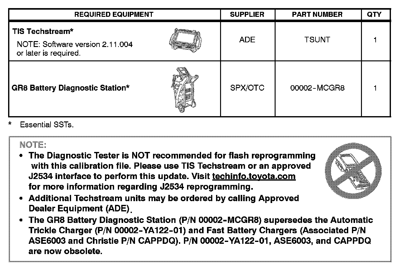 ^ The GR8 Battery charger MUST be used in Power Supply Mode to maintain battery voltage at 13.5 volts while flash reprogramming the vehicle.