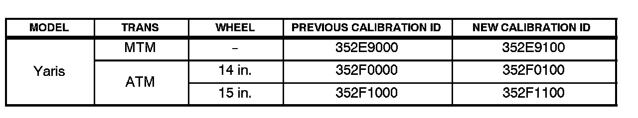^ Calibration ID(s): [Refer to the Calibration Identification Chart for the NEW CALIBRATION ID]