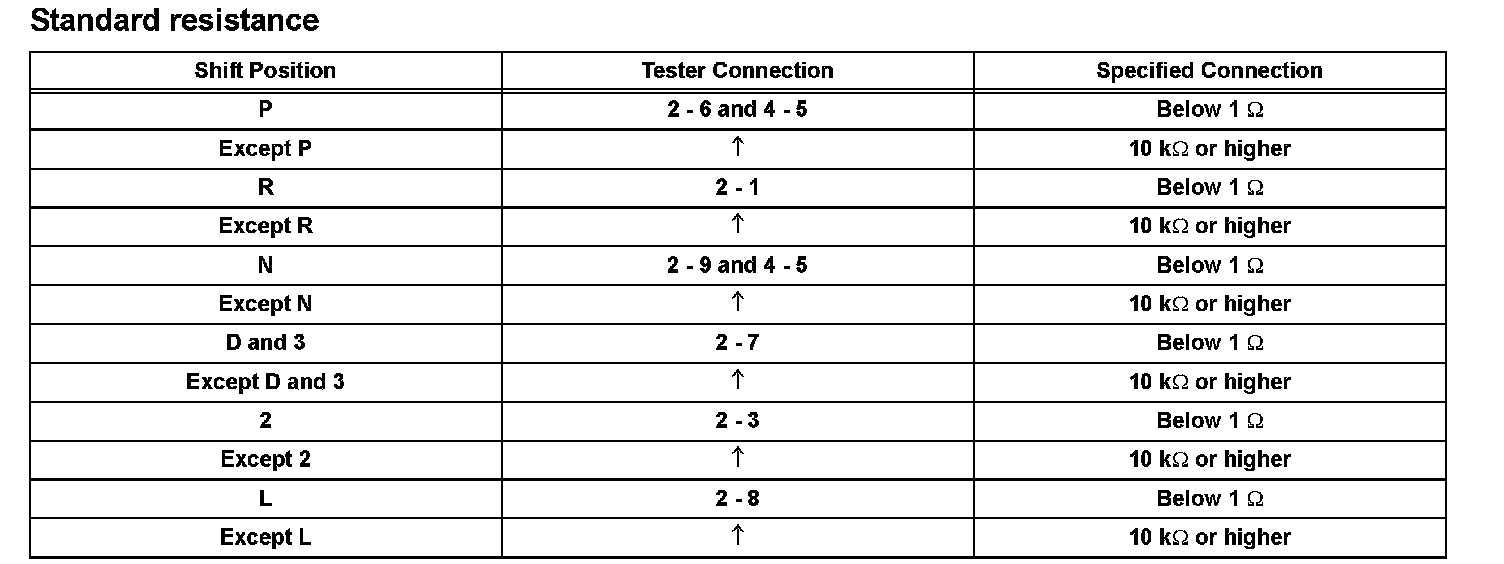 (b) Measure the resistance with the shift lever in each position.
