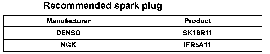 Electrode gap for new spark plug: 1.0 to 1.1 mm (0.039 to 0.043 in.)
