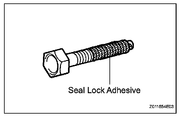 3. When reusing a precoated part, clean off the old adhesive and dry the part with compressed air. Then apply new seal lock adhesive appropriate to that part.