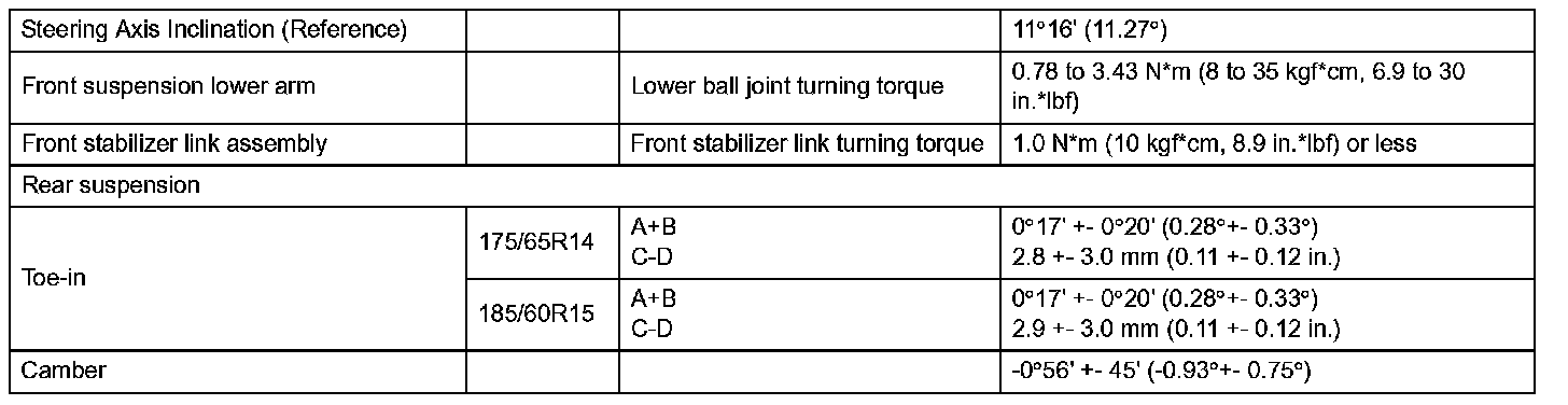 Suspension Service Data (Hatchback - With Rough Road Package):