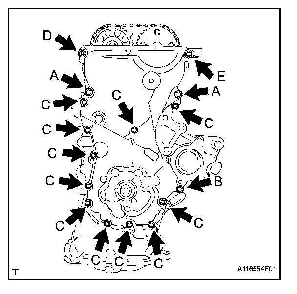 Using SST, tighten the bolts in several steps to the specified torque.