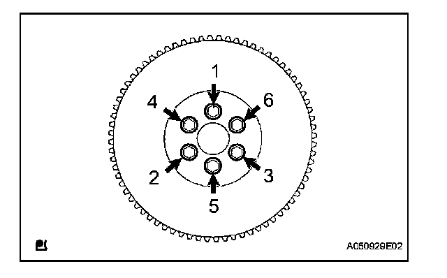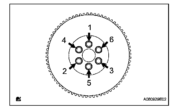 Install the flywheel with the 6 bolts in the order shown in the illustration.