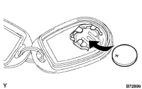 (a) Install a new battery (lithium battery) with the positive (+) side up, as shown in the illustration.
