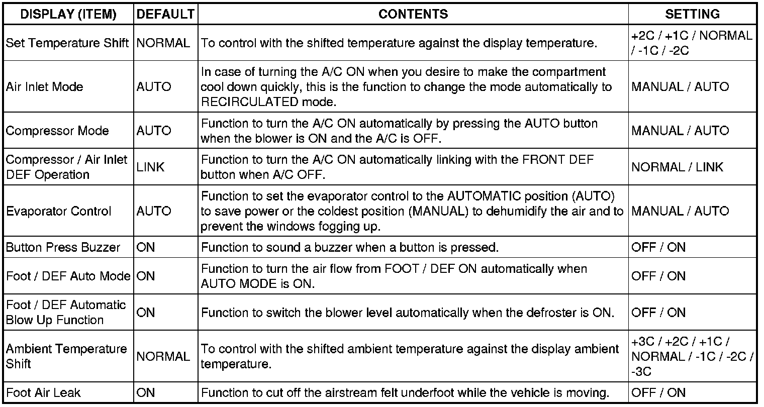 AIR CONDITIONING: AIR CONDITIONING SYSTEM: CUSTOMIZE PARAMETERS