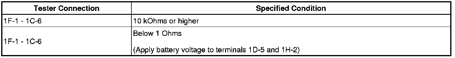 If the result is not as specified, replace the engine room junction block assembly.